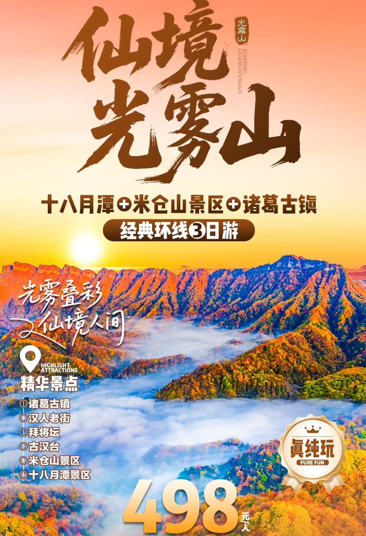【立戰(zhàn)國(guó)旅】10月29.30.31仙境光霧山,米倉山景區(qū),十八月譚,諸葛古鎮(zhèn)(純玩三日游)